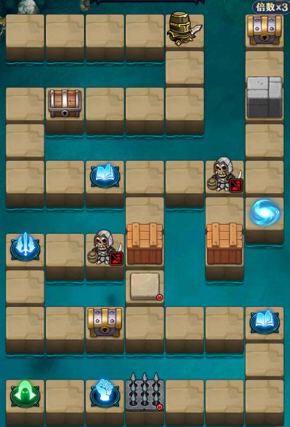 3、合理的规划好线路也是过关时获得最大收益的技巧。地图内的机关设置,例如将木箱放在机关石板上,对应地刺就会收回开放道路,这个技巧大家应该都可以理解。但是一些地图木箱较少,压在石板上的木箱也要拿来推到河里制造通路以拿到对面岛上的奖励,这就需要一些路线规划上的技巧了。