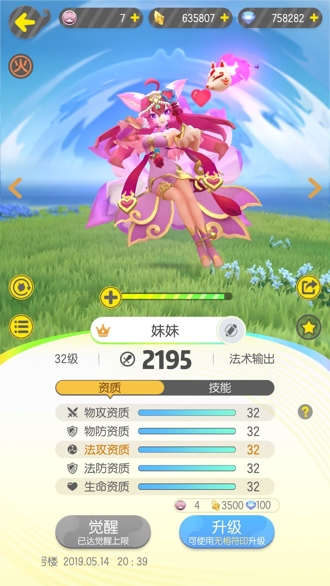 2019年4月11日10点整,选择了我在捉妖世界的第一个妖灵-贪狼,然后随便抓了几只妖,玩了一会就卸载了,第2天早上实在qq看点中,看见了一个什么青丘六子的活动,因为当时比较喜欢王者中李白而酒狐又有几分神似,然后就又下载了,看见地图上有,赶紧出门去抓了2只小狐狸(毕业一只就是图中黄九郎),因为觉醒需要小狐狸碎片,但是自己又不够,上班中也无法跑太远,就所谓的神行模式抓,抓到灵力不够,还斥巨资买了3瓶高级灵力药水,记得是最后剩26灵力的时候抓了1只满资质小狐狸(公屏各种炫耀,也应该是我们这第一个出满资的人),然后就开始了觉醒之路,先觉醒的30➕狐狸,10级觉醒的时候出了公狐狸,各种欧气方法都试了遍,20级觉醒出了九郎(失落没出酒狐),紧接着觉醒另一只满资🦊,10级觉醒成了母🦊(气炸),但是听本地群里大佬们说红玉也很强,就许愿来只红玉也不错,然后出了娇娜,更不巧的又在群里看到说九郎是最菜一个(更炸了),幸好打擂台的时候发现娇娜通过不断加血也可以平A击败敌人!(后期九郎也修复了什么bug,重回巅峰)才玩了下去!直到现在!!!(虽然一直很混!!!)