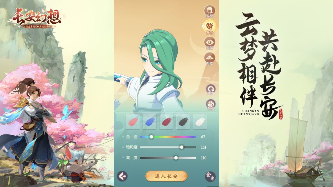 而在发色方面,御灵师除了能够选用预设好的几种发色模板之外,还能通过调整色相、饱和度、亮度来设计出自己喜欢的色号。只要你愿意,头顶青青草原也不是个问题。