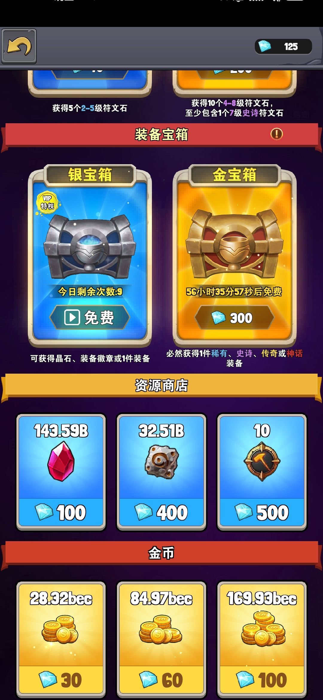 商店唯一需要购买的是符文金箱子,和白嫖银符文箱子。