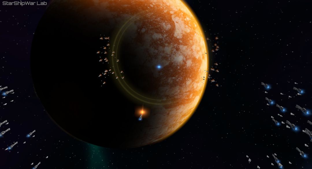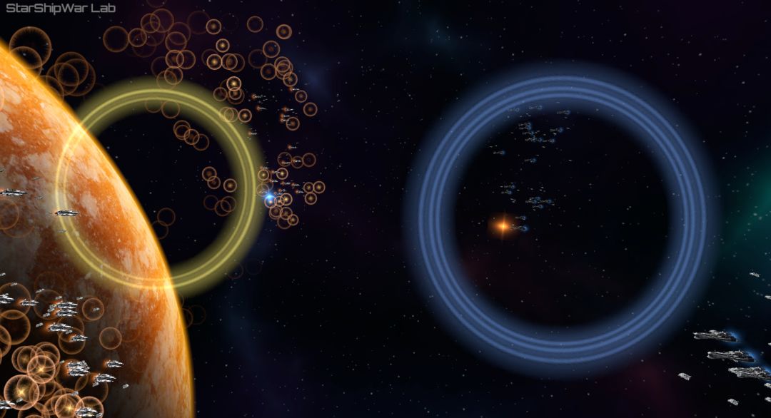本来只是在尝试核弹对射,但意外发现了个小bug。在核弹爆炸中央位置附近的一艘飞船没有被摧毁。😅