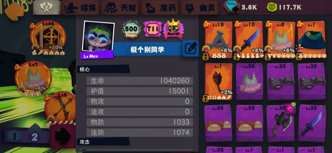 刷了几万金币的幽灵,最后在13个3级装备部的时候达到了百万血量。