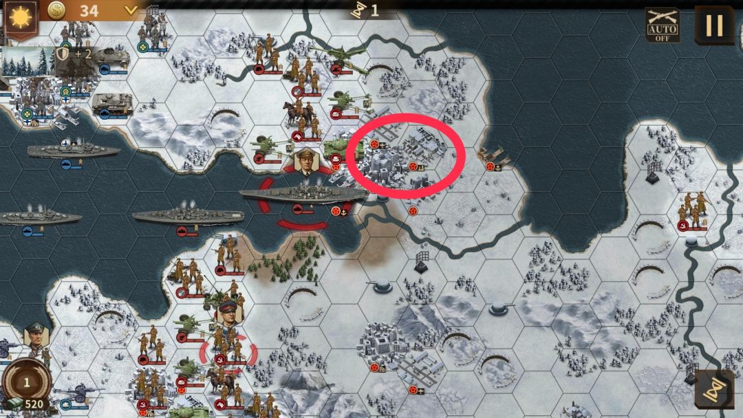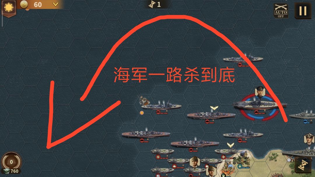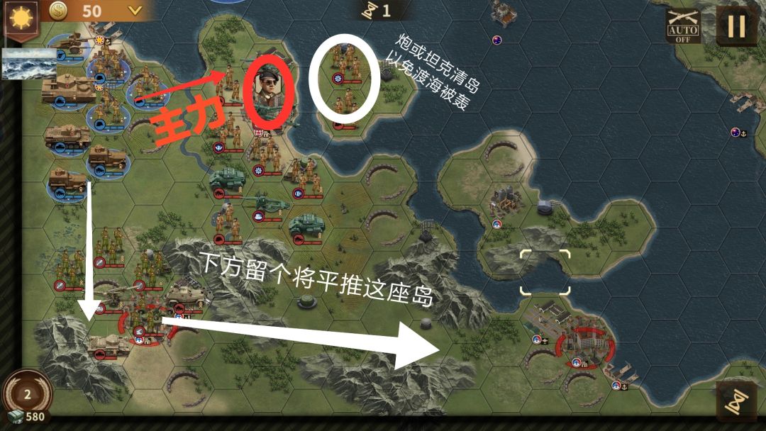 值的说的也就是右边登陆,有2种,一种是直接左边开局就抽调一个步兵下海去右边等海军清岛登陆,一种是海军清岛后你可以等步兵cd好了直接在这个地方就可以招,前提是格子没有敌军且你的部队要在附近,左上黄圈给40块,目标位置看图。