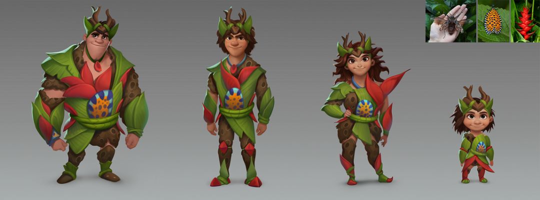 第一次磨合最后设计出的春季时装:原始人用大自然的馈赠,在复苏的绿色上点缀大红的花朵,带着轻灵的鹿角飞跃穿梭在原生的丛林中~希望能给带给玩家春天盛装出行的活力感。
