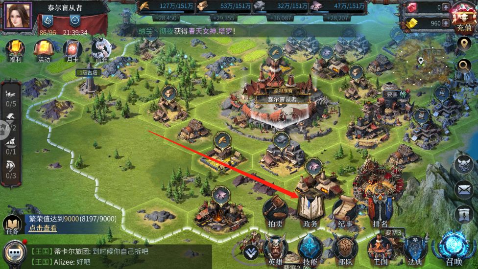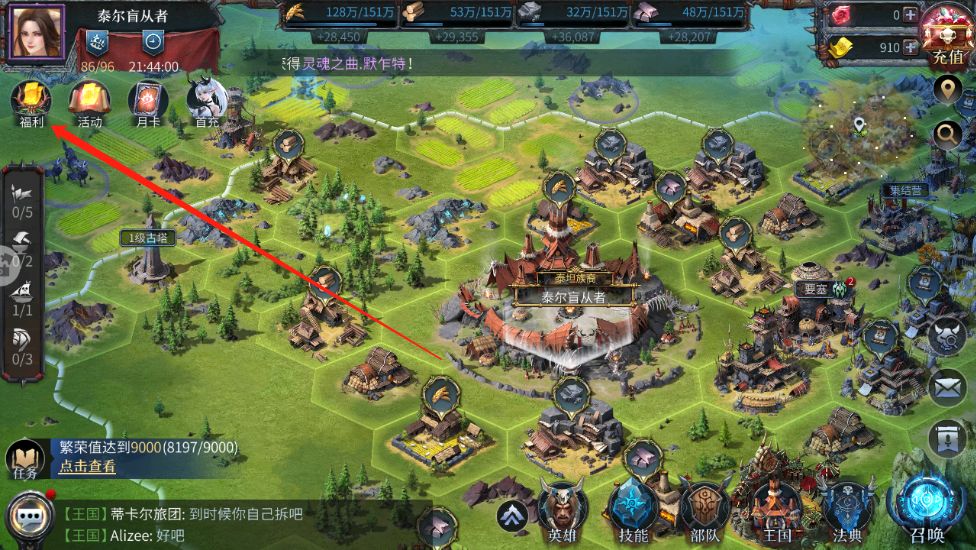 进入游戏首先,先跟引游戏指导走(避免资源浪费),很多时候我们没跟着指引浪费了很多先手别人一步的机会,前期跟着指引走是很重要的