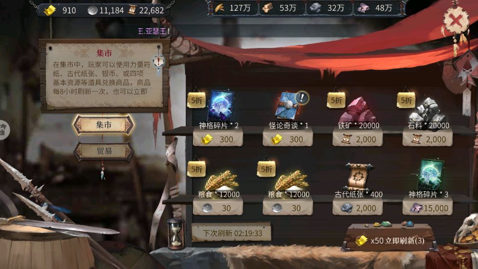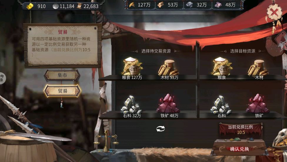 在英雄的左边这个小箭头这里面是每天都有资源换的,有的时候粮食资源过多小伙伴们可以换点其他的资源不过每天的比例不一样