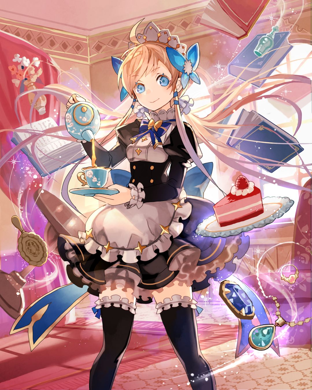 分享有礼奖,通过以上两种方式获得原画集的卡友,可以以任何方式在个人信息媒体上分享此原画集(微博、TapTap,B站等),并前往官方微博私信提供截图信息,可获得特别唯一纪念头像卡全能女仆1张(此头像卡为第一次投放,绝对稀有)。