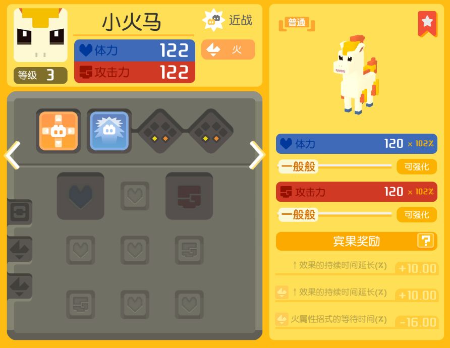发动强化效果的概率:增加强化技能的概率。这个目前很鸡肋,只有增强拳等这类技能描述里面说有概率增强状态的技能都可以用这个宾果加成,这类技能实战效果都不是很好,所以目前还没有开发出好的用法。