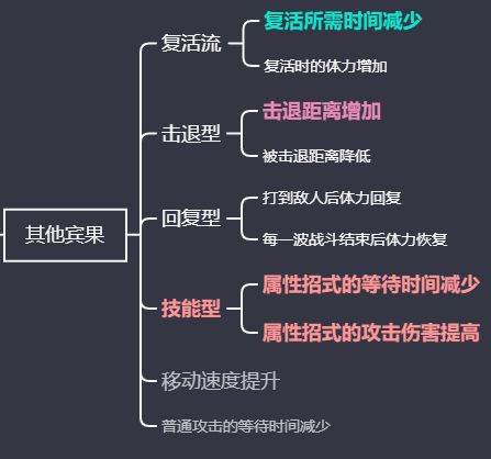 如上图所示,其他宾果有很多类型,其中重要的就是技能型、复活型、击退型。技能型里面:属性招式的等待时间和属性招式的攻击伤害提升是宾果里面很好的属性,在PVP和PVE都有很大的作用。