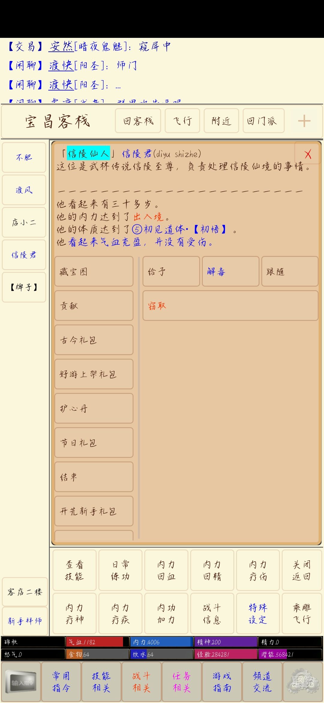 然后拿到的东西,自己看着用,莽就完了!然后点击左下角的新手拜师,点击血刀宗,就到血刀宗了!