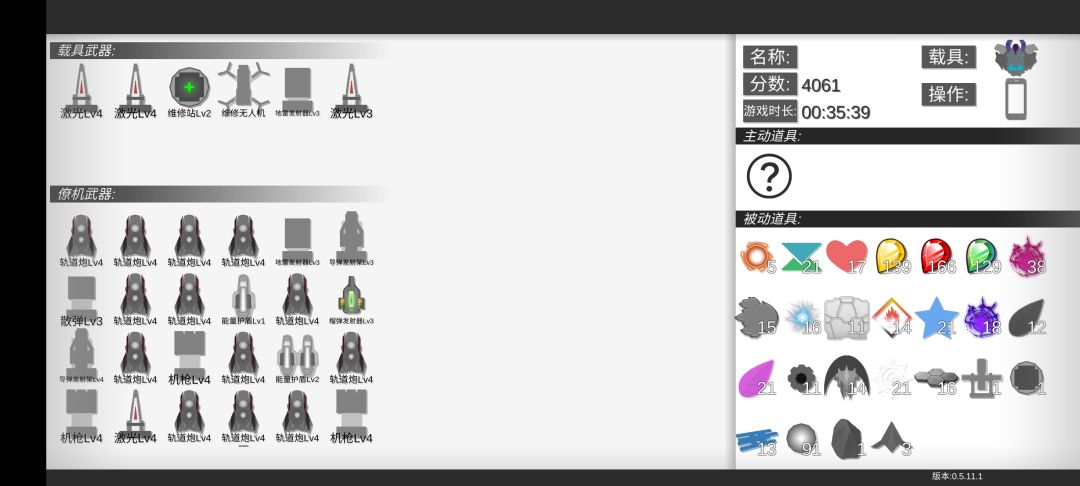 左边是捡了就自动生效的装备,右边是武器