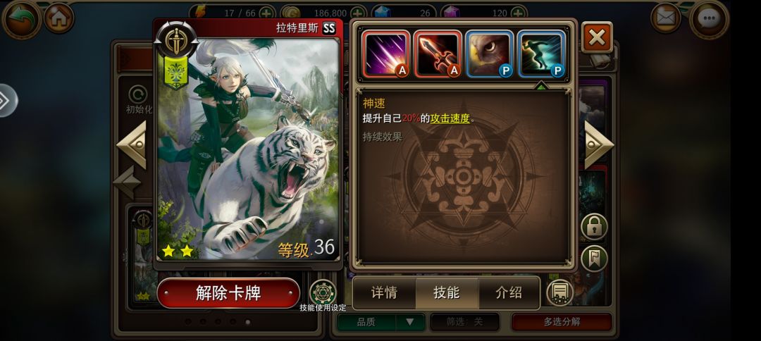 虽然大家都不爱看卡牌面板但是我为了二测特地去看了看,行动力这3英雄都是快,2秒起手意味着他们比大部分副本怪都要快。 有人要问快有什么用,没伤害,当然是有原因的,首先珊得利斯技能被动就是遇到标记会造成50%的贯穿伤害,这个贯穿伤害游戏里解释是无视防御,也就是说真实伤害。 而拉特里斯群攻技能就是标记,首充有一个群攻贯穿技能,然后加上被动是配合白虎就能打出两段伤害,而且拉特里斯永远快一步,就是能打出这个配合,30级前基本没有副本怪能扛过这一波,这两容易练伤害又高,特别是珊得利斯,到后期都不过时,大家放心练,真实伤害永远滴神!