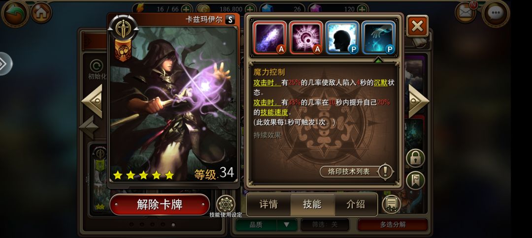 至于我们s级为啥放进来呢?因为他技能cd的很快,2个技能全带破灭烙印,配合拉特里斯前期对肉一点的怪直接搞掉,而且自带沉默,很适合打大怪。 当然PVP这套也很强,很平稳,打的过就是一套没,打不过就是打不过,一切看你等级,当然有更好的sss英雄可以把男主角换掉就是,装备就是攻速剑和技能加速项链,我这套毕竟是面向前期,其它的就不多说了。