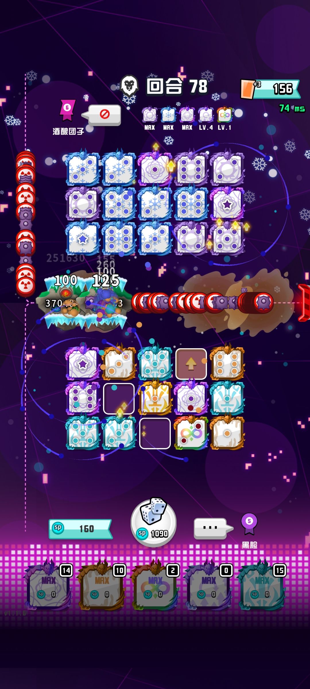 )越往后越不好打,70回后被兽王和魔术师把方块打散的打散,降级的降级,很吃力,而且这时候购买成本也上来了,缺少方块,买不起新的,合不了高等级方块,很难打