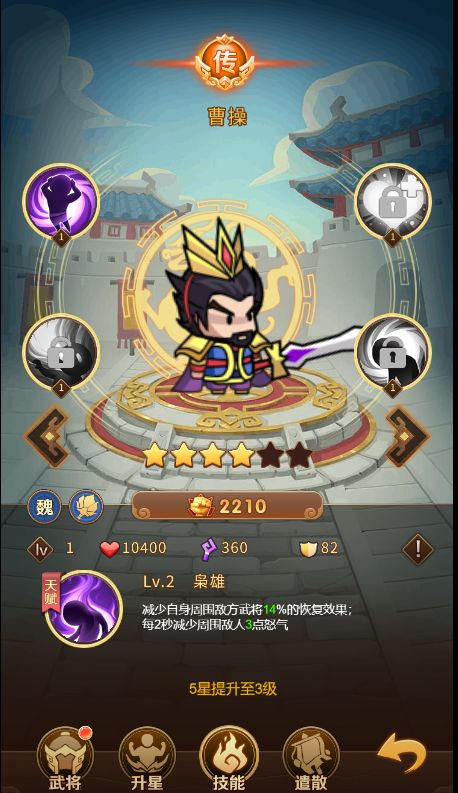 劣势:敌方如果能快速击杀己方曹操或拥有同星级陆逊,近身肉搏容易被敌方法师“一锅端”。