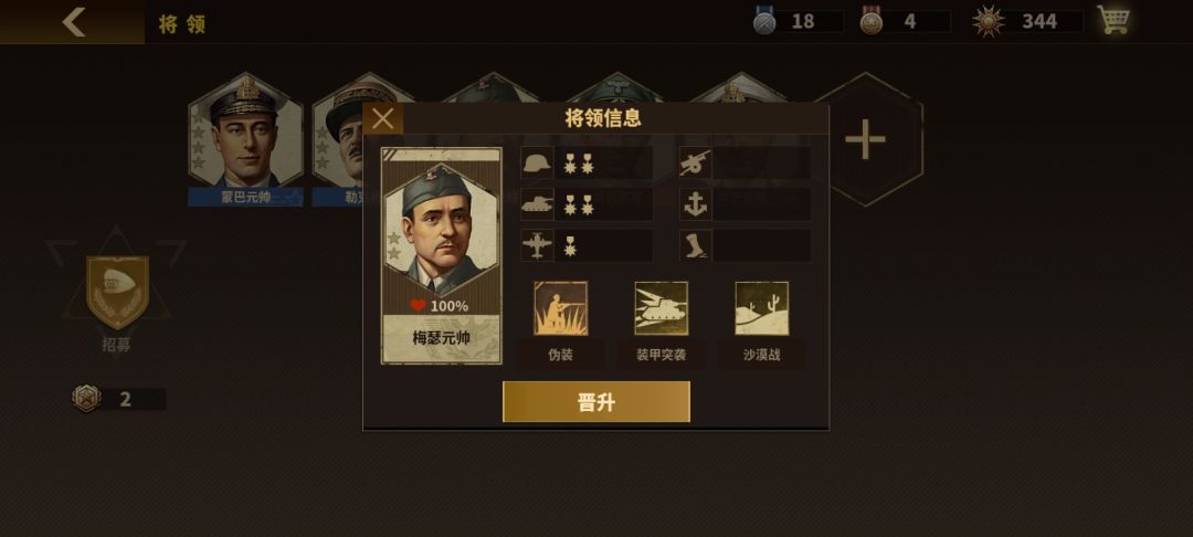 2、步兵,最大为四队,没有将领的话只有三队,值得一提的是步兵可以在城市里面补充,并且可强化为空降兵 通过机场快速移动,或强化特种部队克制步兵/装甲。