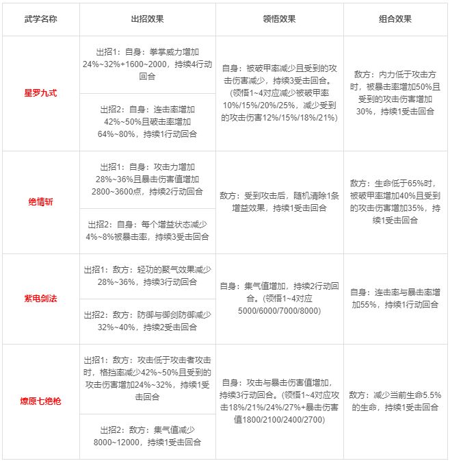 1、 新增了红色武学:(兑换等级:60级,兑换所需:125红武千机点)