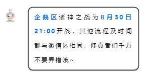 修真者们注意啦,本次诸神之战企鹅区率先开战,大家千万不要错过。快来和呆毛一起看看赛事相关信息吧~
