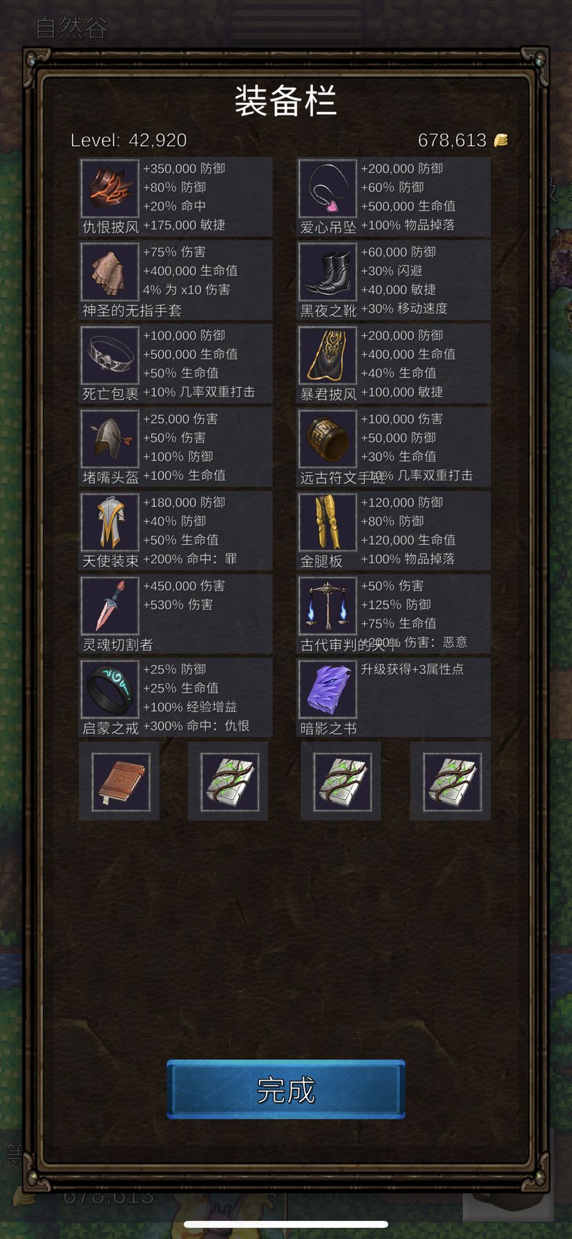 当然这里建议打完仙王后,多打打黑魔堡里面的小怪,一边练级一边爆装备,差不多了以后,装备五书去碰95万级BOSS,会更新出一个100万级的怪物,这一类特殊触发的怪物应该是必爆,会出终极之书,有这个以后,以后打到这边就会轻松很多。