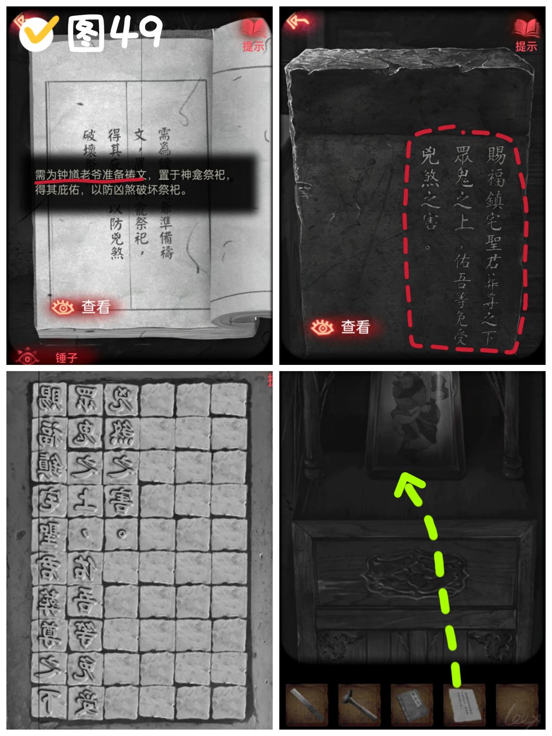 46.回到忌物阁,根据右侧石碑文字调整桌面上的活字印刷,拼好后刷上墨汁,覆上黄纸,获得〔祷文〕。
