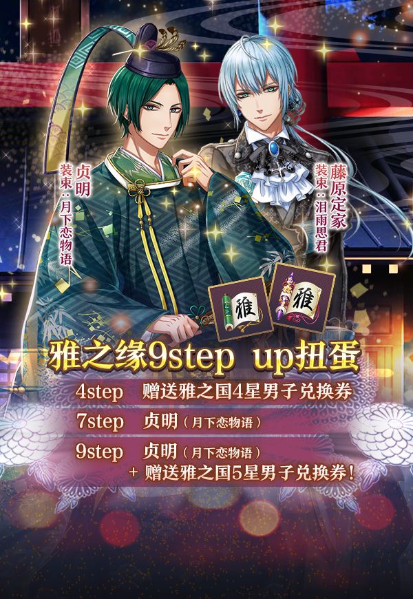 活动说明:活动期间巫女大人点击主界面滚动宣传图及“召唤”按钮进入<雅之缘>扭蛋界面可进行STEP9召唤,召唤规则如下: