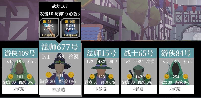 △英雄会自带攻击防御心智三个属性,升级也会自己加点提升属性