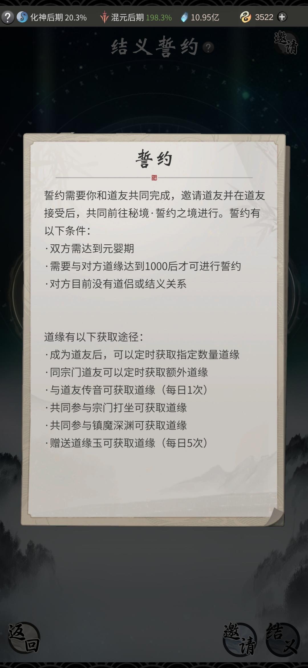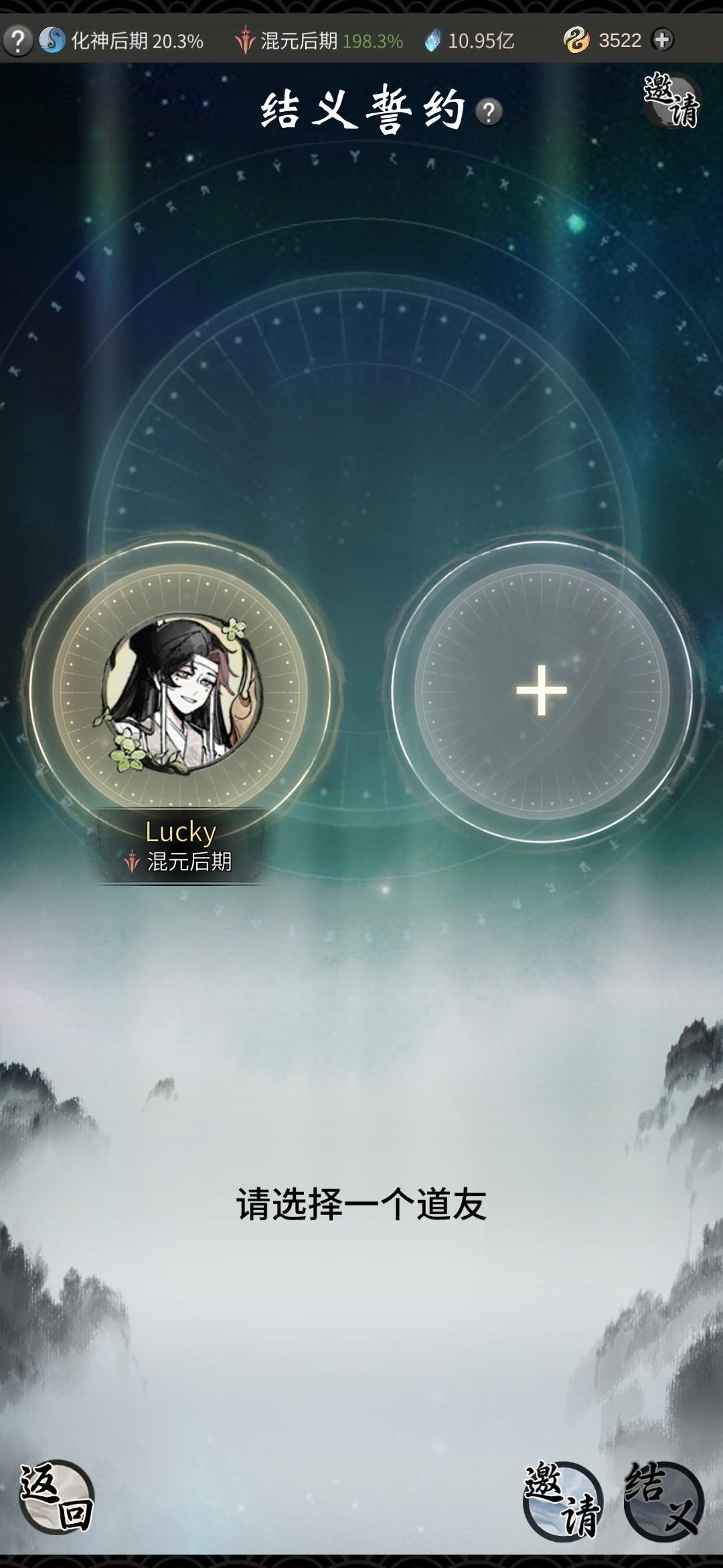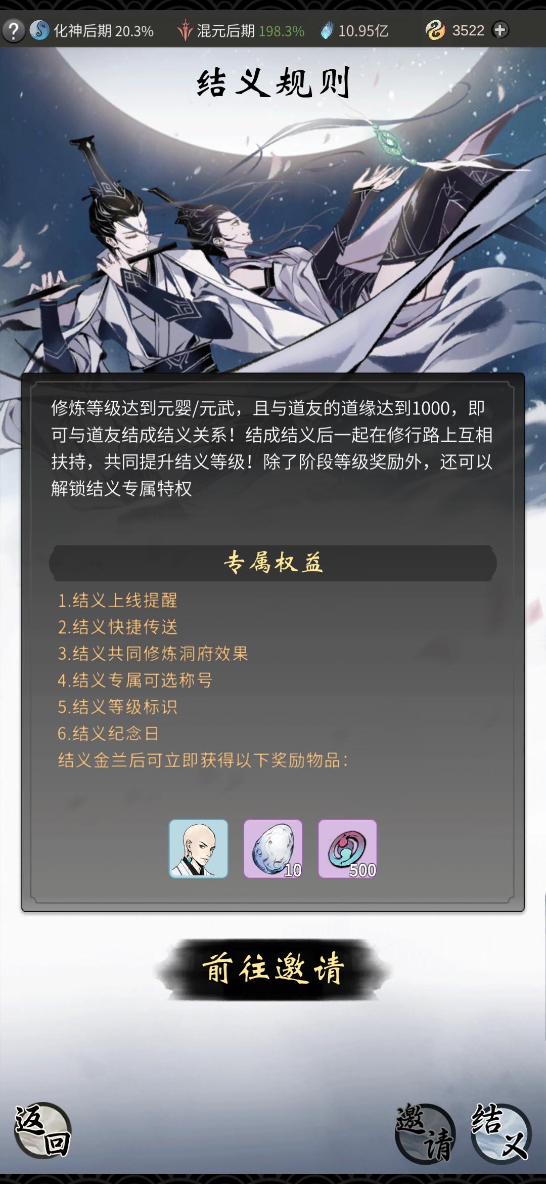通过点击 道友 按钮左侧的 结义 按钮进入结义界面
