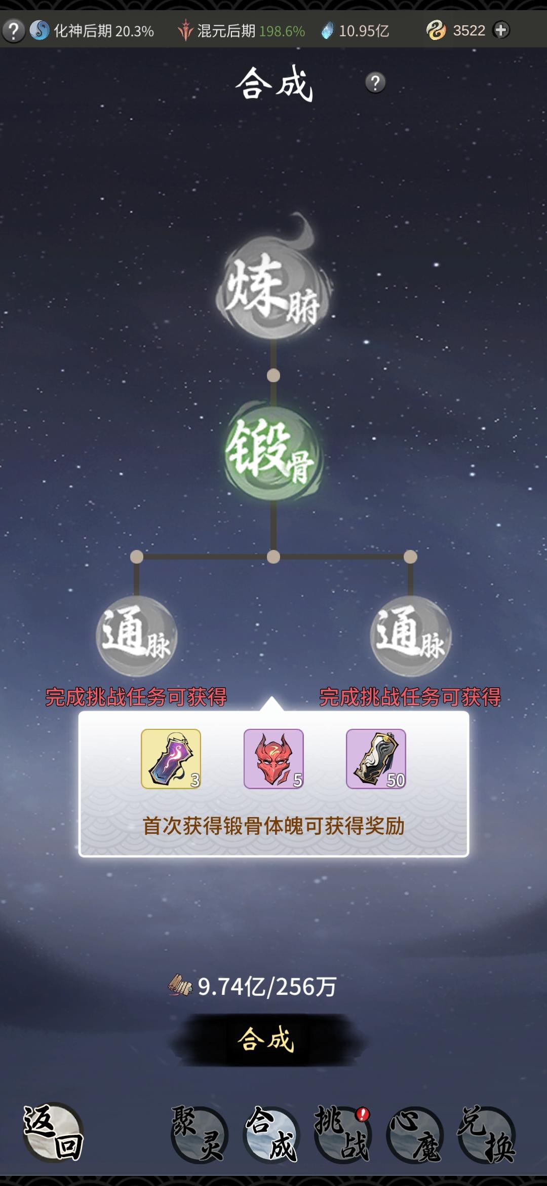 使用道具 通脉 进行合成更高等级的素材,合成需要消耗 神通心得
