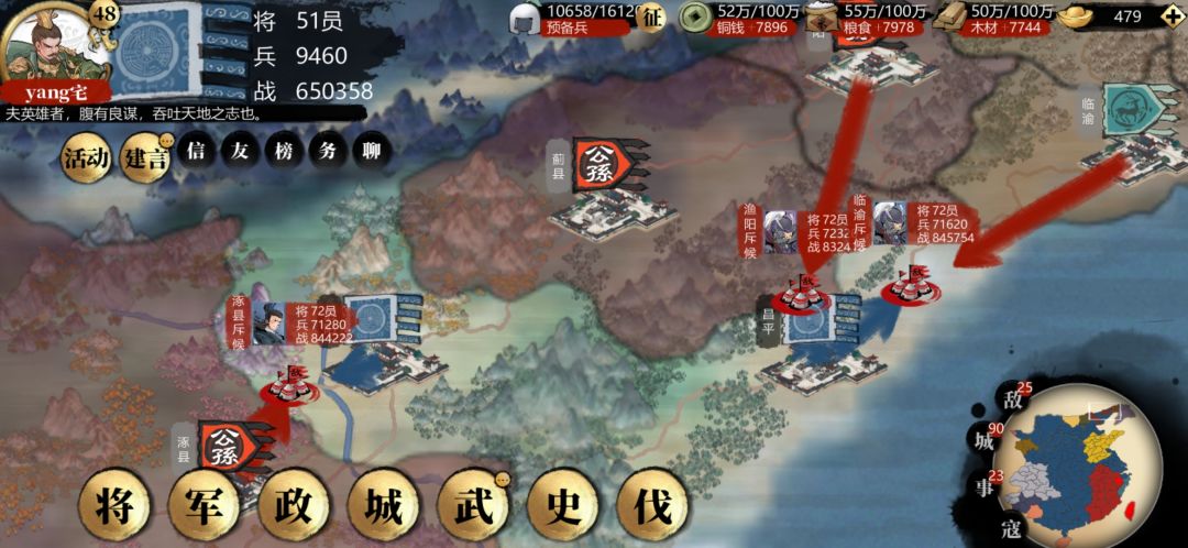 截图的公孙瓒是目前我面对的最弱势力了,还是大有可能全军覆没,策术都用了,还是顶不住对面车轮战,没得法了