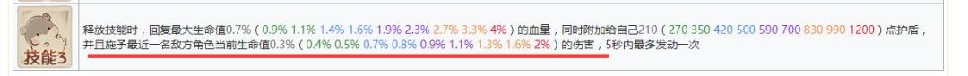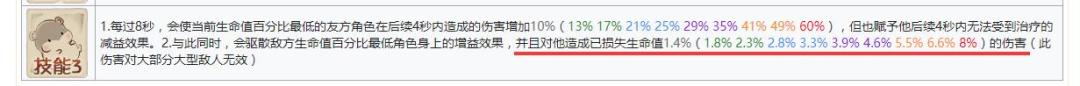 限制:按已损失血量的百分比固伤,即前期乏力,后期强势