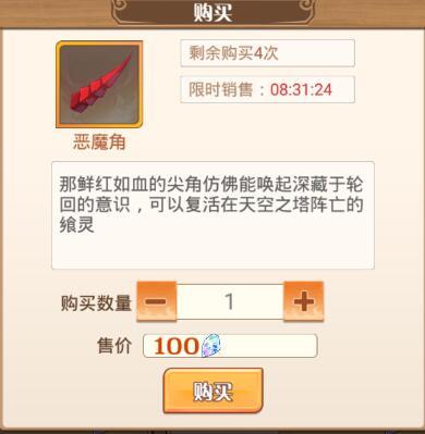 3. 如果要复活飨灵,只能买商城道具-恶魔之角(100钻)