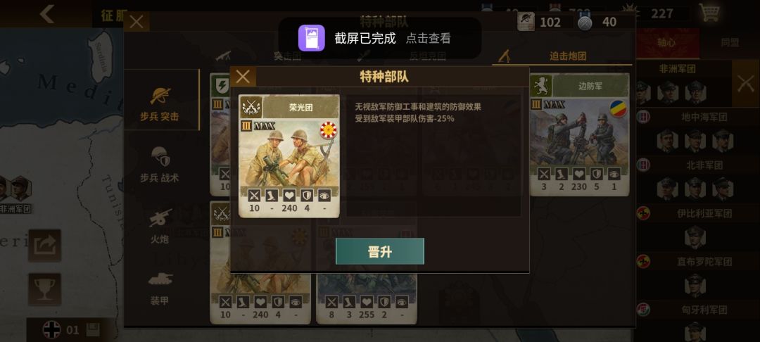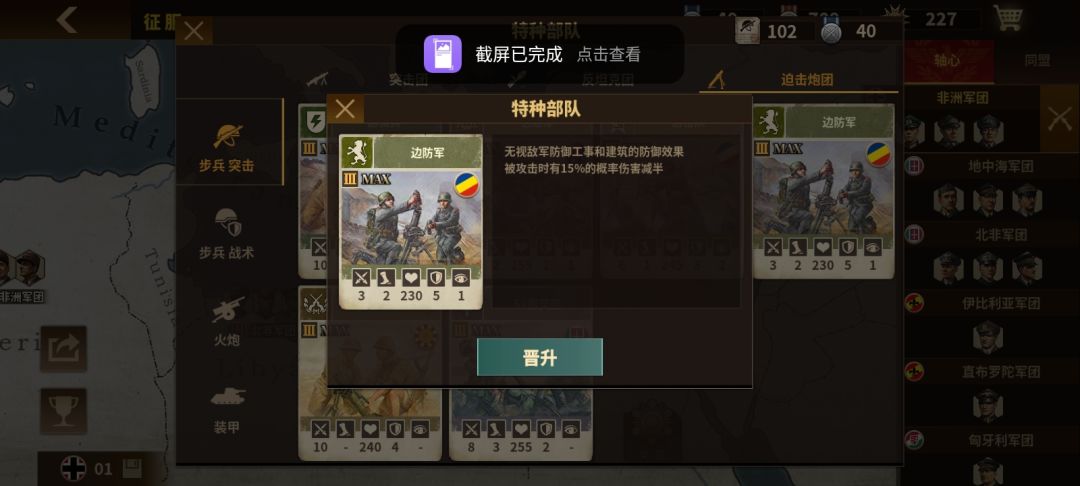 与突击团和反坦克不同,本做的迫击炮兵团属性并不算出众。主要还是为历代游戏的通病人机,人机不会主动修建工事,而且工事的防御太低一般提供减伤也就10%左右。单看还好,不过换算成加伤的话,实在不太够看。这也导致他打步兵不如突击团,打坦克不如反坦克,炮兵一般又不站在防御工事里面。因此成为了一个尴尬的定位,那就让我们接下来看看有没有特种兵的改变她这种尴尬的地位而进入玩家的选择之中。