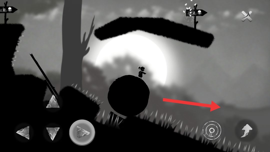⑤大球停止后调上小船。控制方向键使小船移动。注意保持平衡,使小船完美卡在尖刺上。在自己触碰不到尖刺的情况下向右跳跃到达平台(操纵偏难)