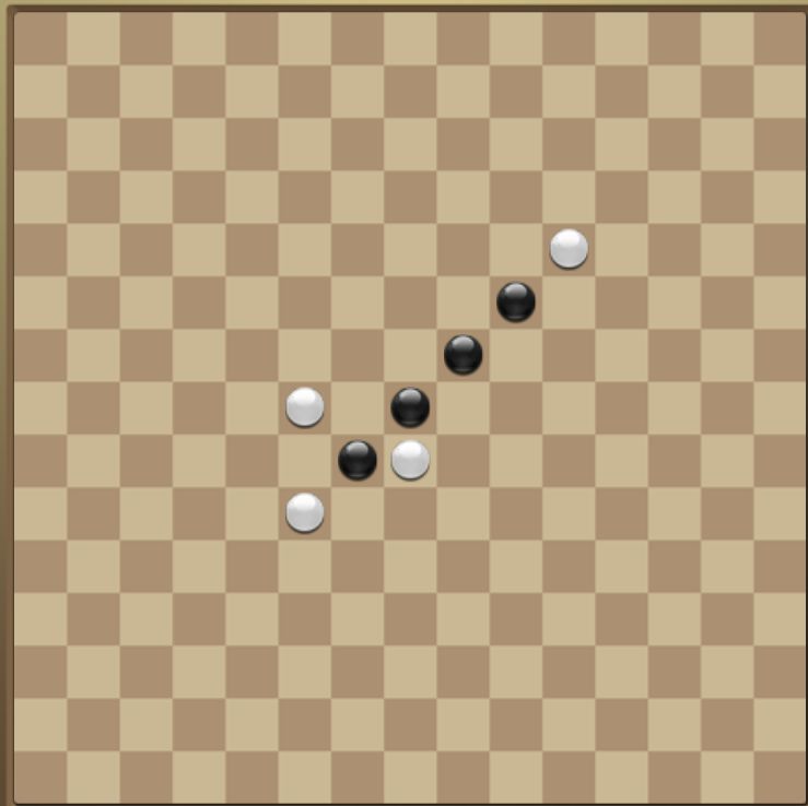 第二步:以最上面两枚黑色棋子为对角线,填充成一个2×2的正方形