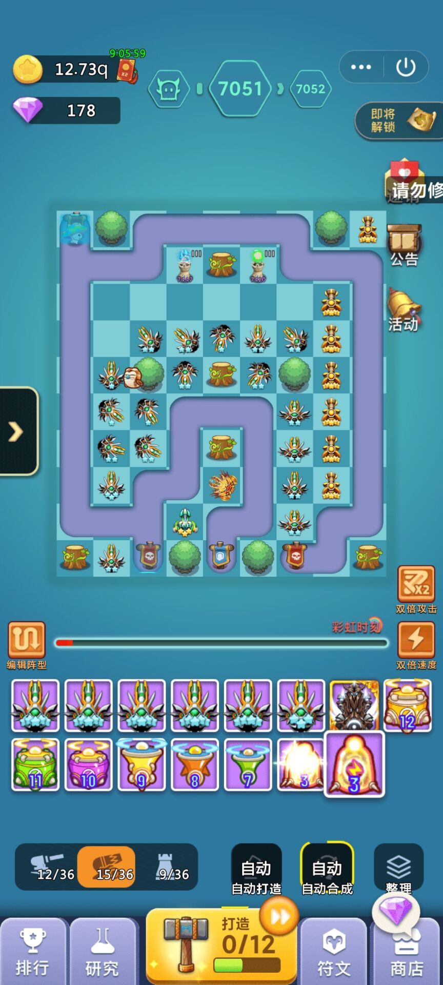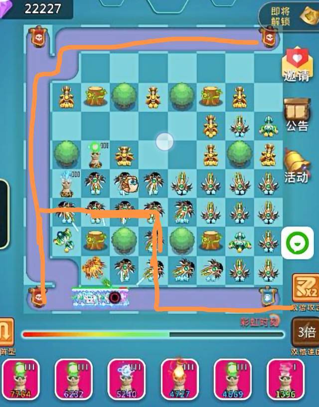 另外这里还要讲的就是大家从前期到后期尽量保留圣洁作为主要控制手段,越多越好,不够的话用10级魔法炮代替,但有些图不是越多越好,按照我提供的线路图照葫芦画瓢,基本都能轻松通关,轻松挂机。有了以上三个阶段大家就可以轻松到达13500关了,目前13500是当前最终图,往后不更新的话就一直是这个图了。