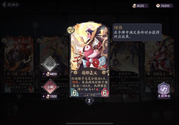 ★+1+1前期场面交换很有用,也可以给鬼切这类身材成长收益很高的式神进行成长。