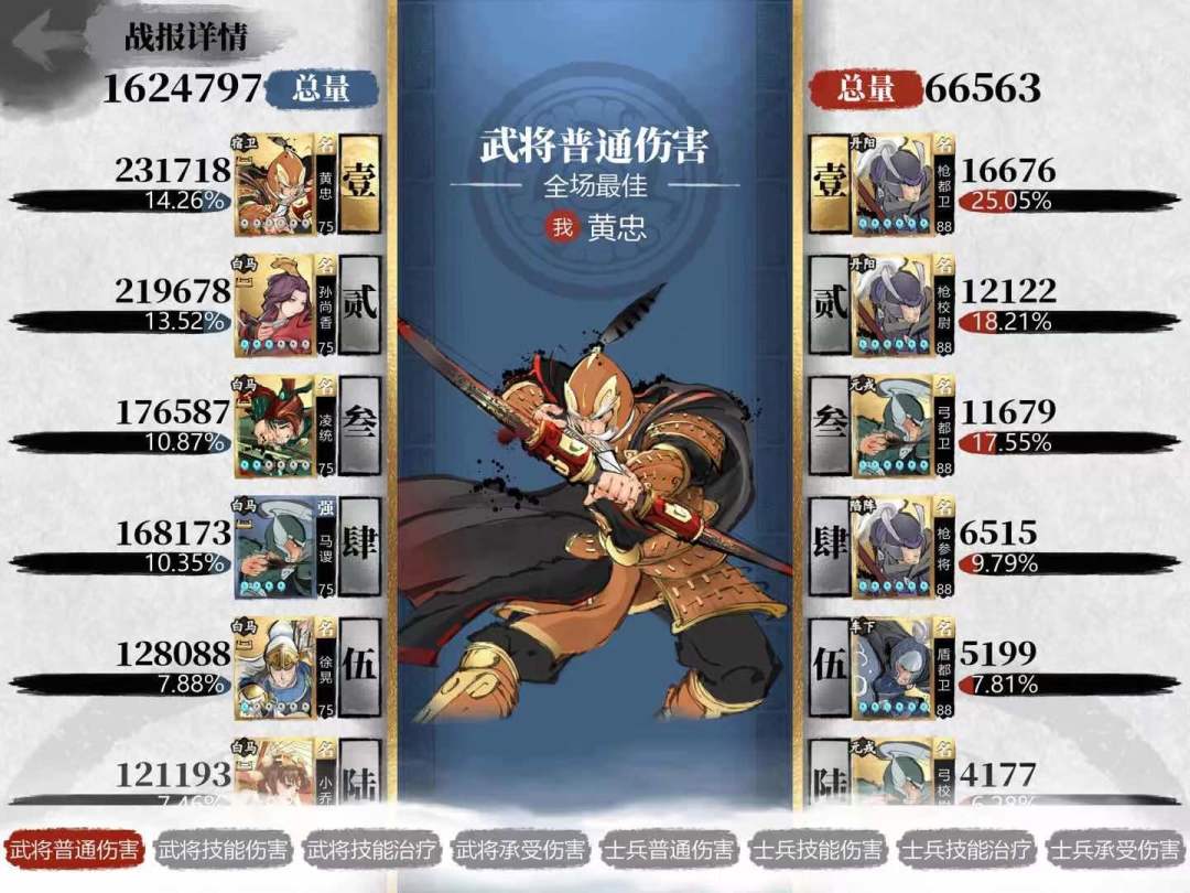 这时有个优先级分配问题,比如稍微强力的弓箭手要和智商低的前排站一行,这样能更快打掉对应行的策士,否则低智商盾很容易被策士打掉。比如我的黄忠和周泰。
