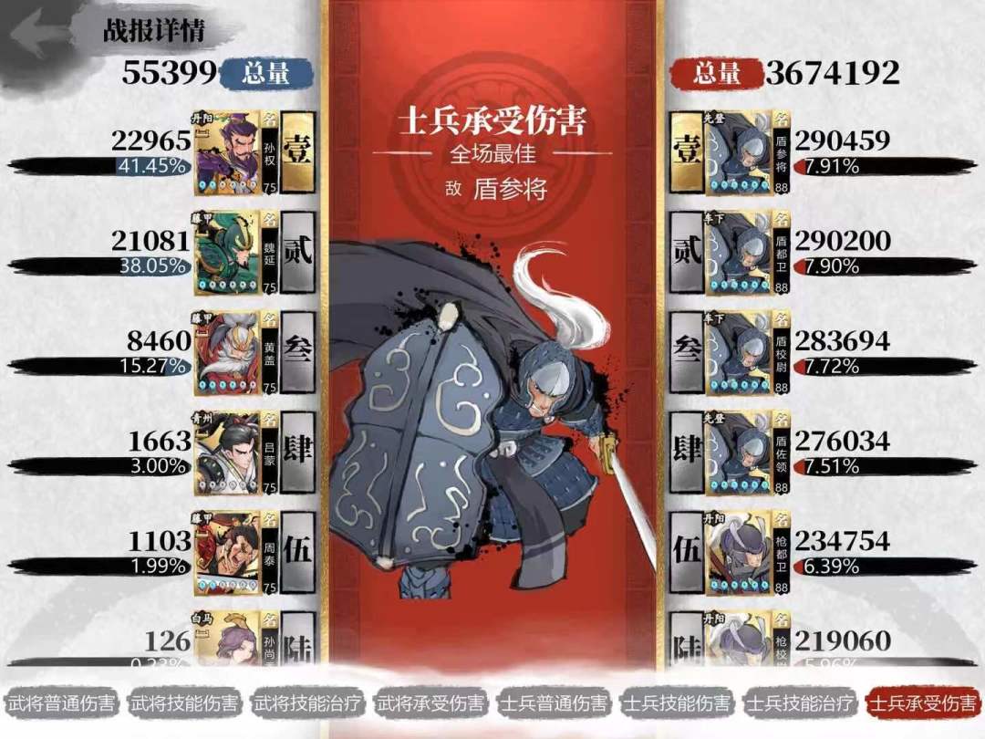 我沿用一直以来了盾(全藤甲)+孙权(全运气,装备一立纪二天眷)+吕蒙(全运气装备三天眷)的前排阵容。