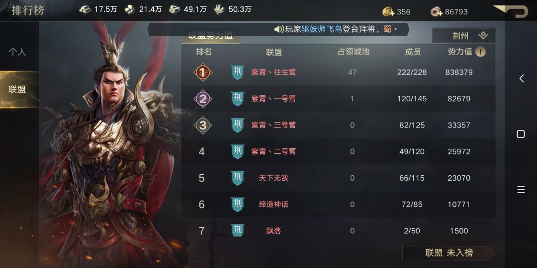 扬州和荆州联盟被称为“紫霄双盟”,目前在当前测试已经占优。