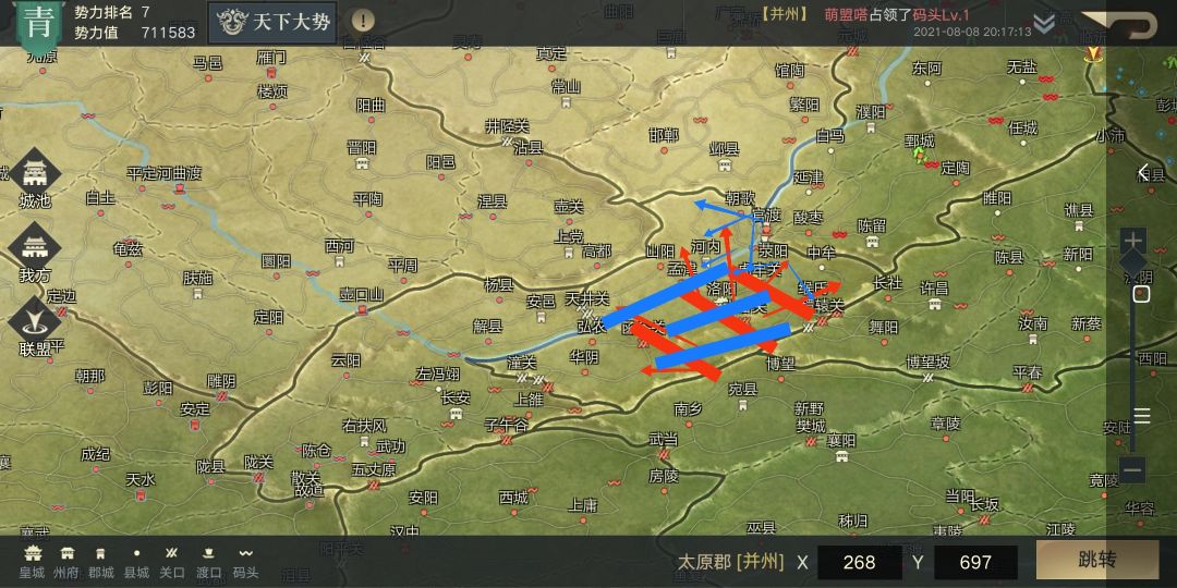 双方在,洛阳南郊大谷关,东郊虎牢关,北郊孟津,东北郊荥阳,等地区均有交锋。关口均被【紫霄双盟】占领。目前整个洛阳地区,在紫霄的控制下。