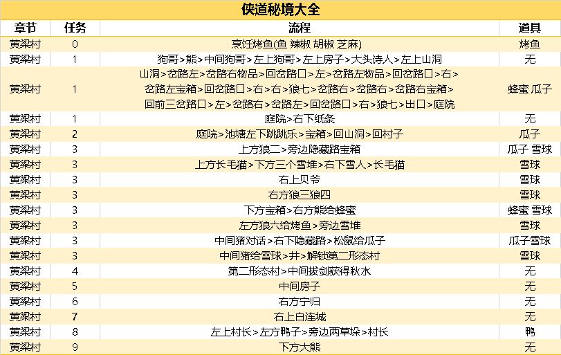 【江湖百科】新增黄粱村文字简版完美攻略
