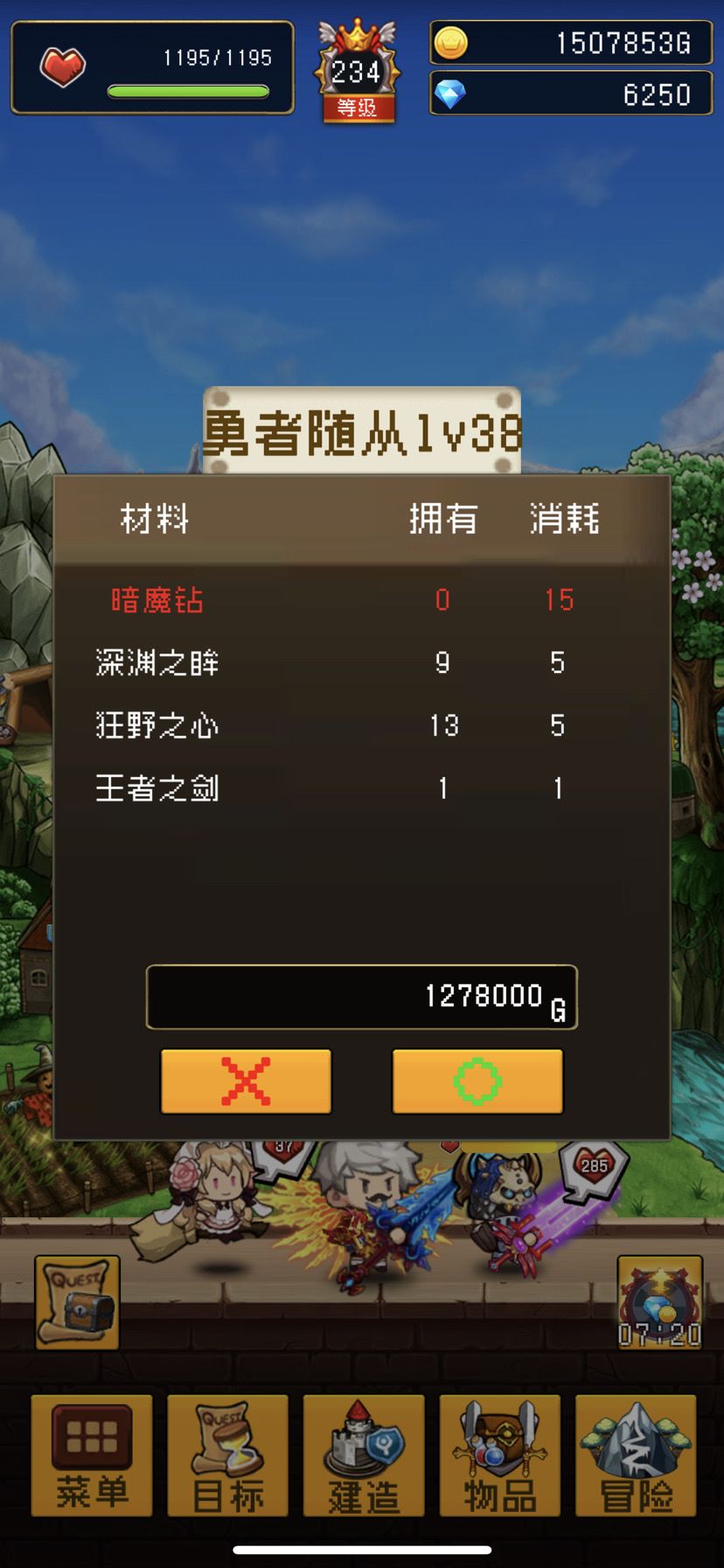 能打的基本都打通了,就是没见到暗魔钻,感觉这玩意应该是终焉之岛出吧。终焉之岛要239级才能打呀。可现在升235级就需要勇者随从38级,勇者随从28级需要暗魔钻,无解啊