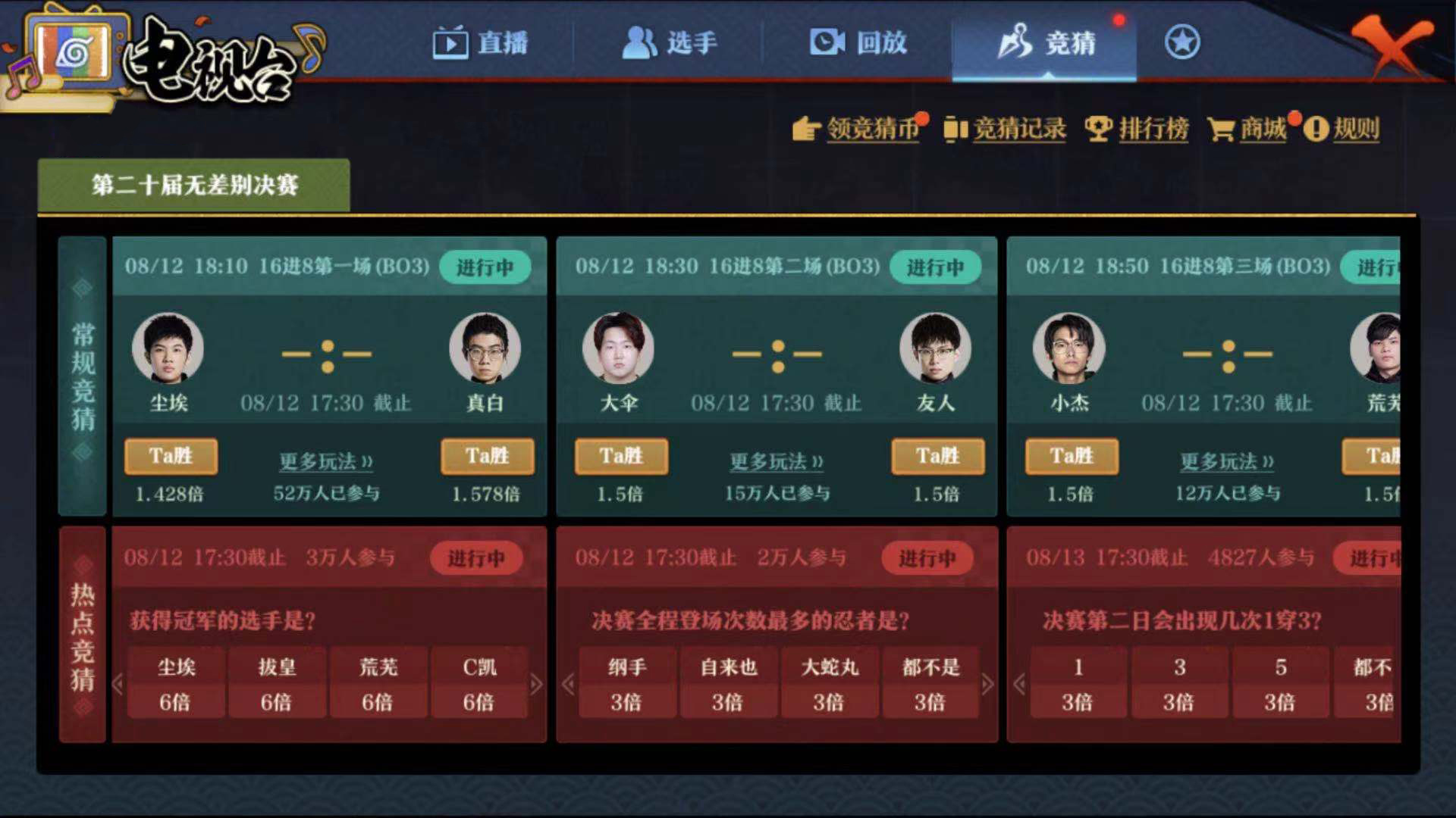 想要获得更多竞猜币的学员们,在比赛正式开始前可就决赛的胜负结果、穿三次数、冠军归属等竞猜问题下注竞猜,在比赛结束后,竞猜正确的学员可额外获得大量竞猜币!