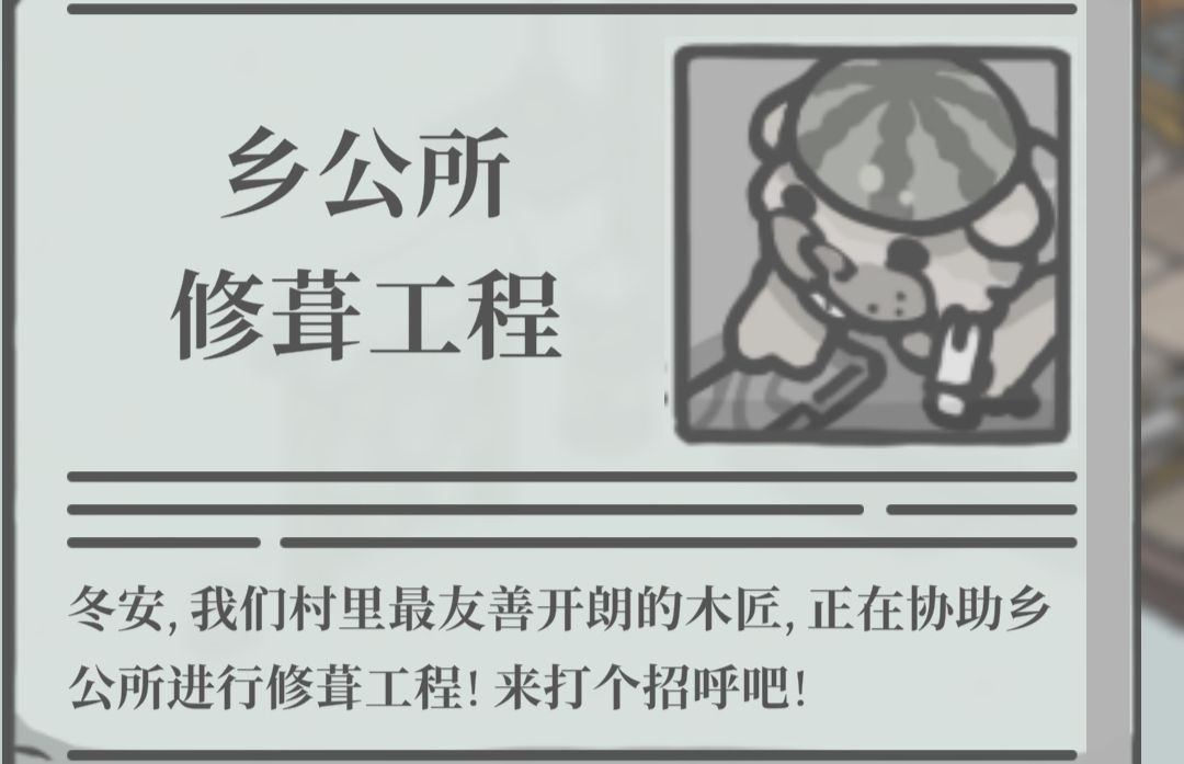 日报:乡公所修葺工程,进入市政厅会看到新人物冬安,对话会获得建材店地点。