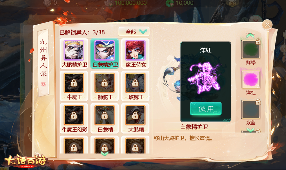 九州异人,待君解锁!大话手游“修罗斗技场”将迎来全新【九州异人录】玩法,本周四先行体验开启后,玩家参与副本战斗击败图鉴中怪物,使用掉落的染色道具即可开启转盘,获取异人幻化配色,并能在修罗斗技场中解锁怪物相应的染色幻化配置!敬请关注后续爆料!