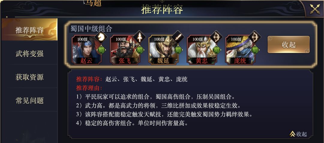 【蜀国】中级阵容推荐
