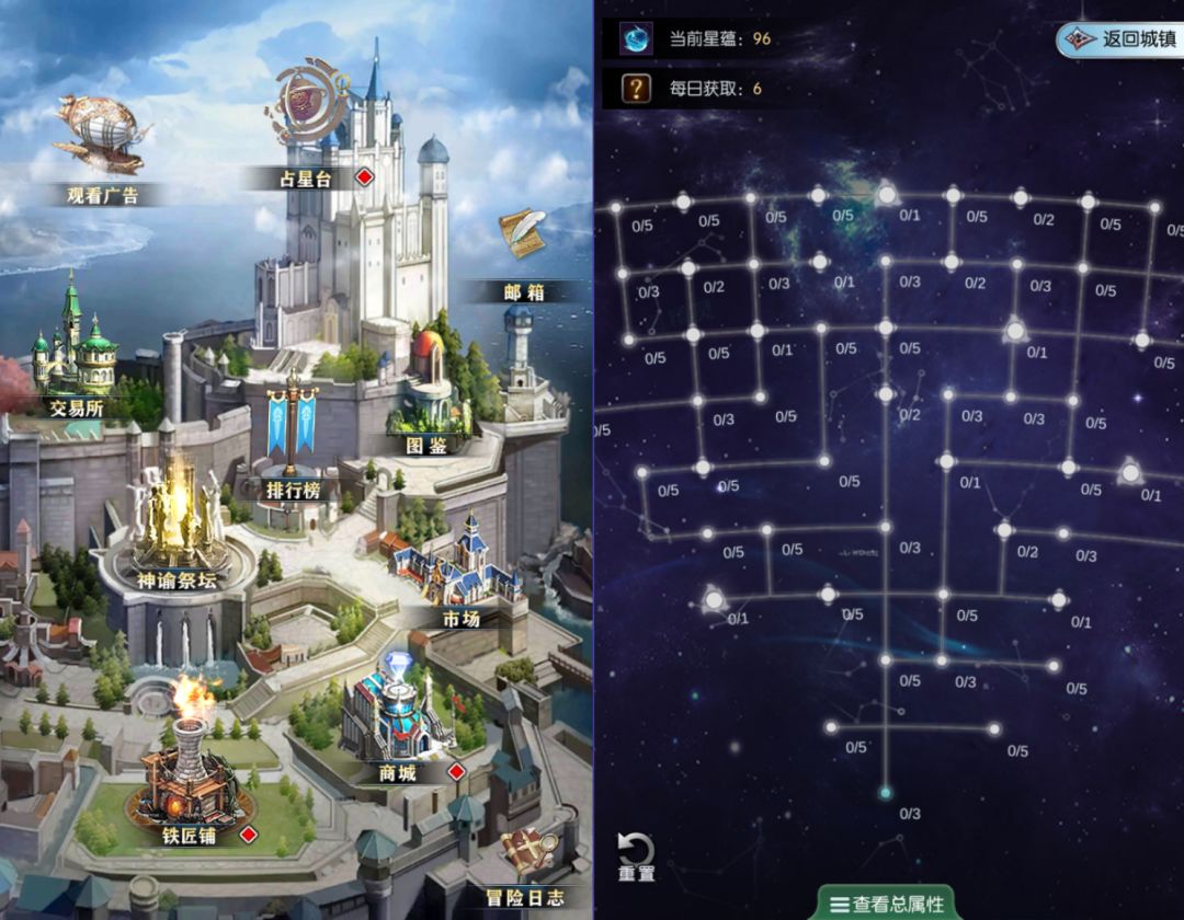 星盘功能在城镇的最上方“占星台”中,通关了普通关卡即可开启。
