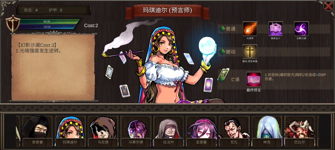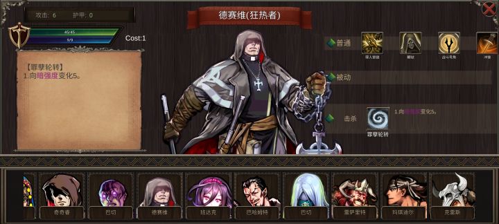主角buff3+光强度*2一费对单 狂热者buff暗程度*1两费对行