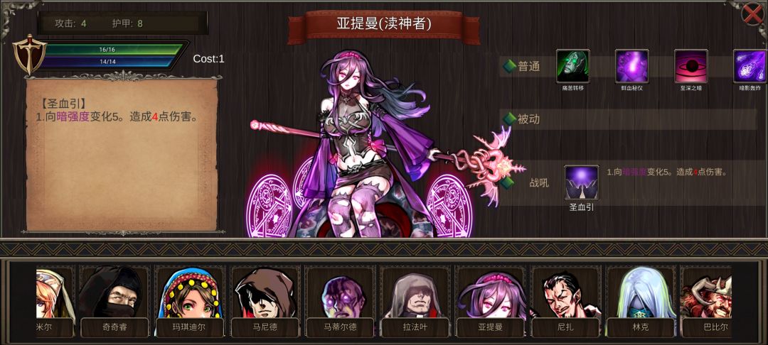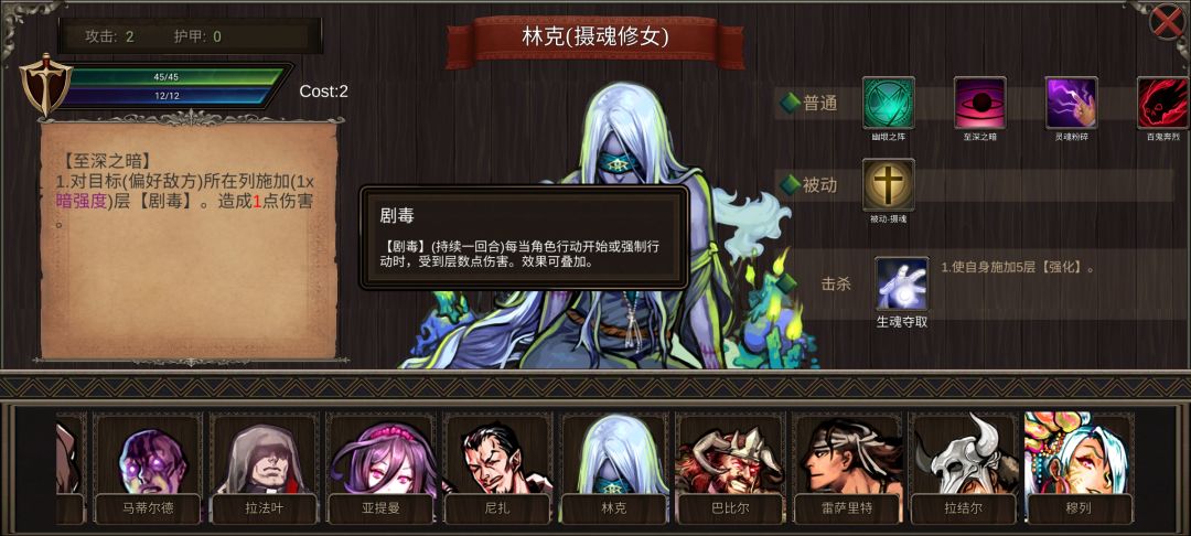 玩暗系建议把主角下了,不然影响暗度,多个回合暗度高了,直接挂buff疯狂打就是,撕裂毒什么的buff流