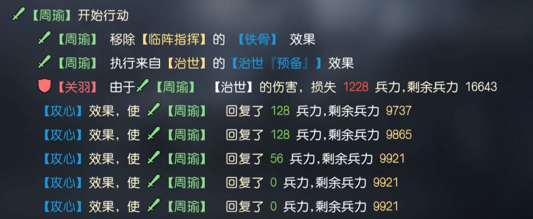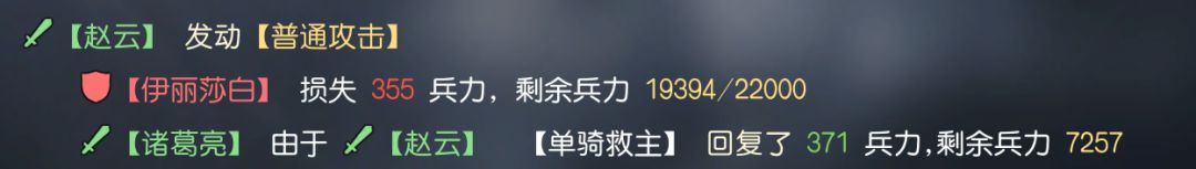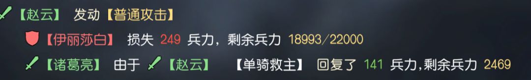 最后如赵云这类,以技能效果触发治疗的将领(与伤害量相关,与将领属性相关),在战斗中测试后可以看到,虽然伤害量上略有不同,但使用伟大艺术后造成的治疗量也几乎翻倍。